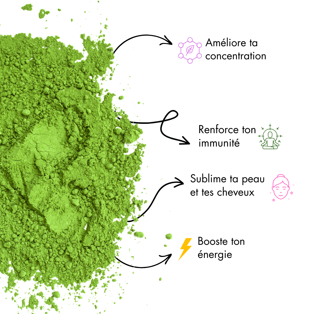 Nous vous recommandons de le garder dans notre pot, à l’abri de l’air, de l’humidité, de la chaleur et de la lumière. Idéalement, placez-le au réfrigérateur après ouverture pour maintenir sa belle couleur verte et ses bienfaits 💚.
